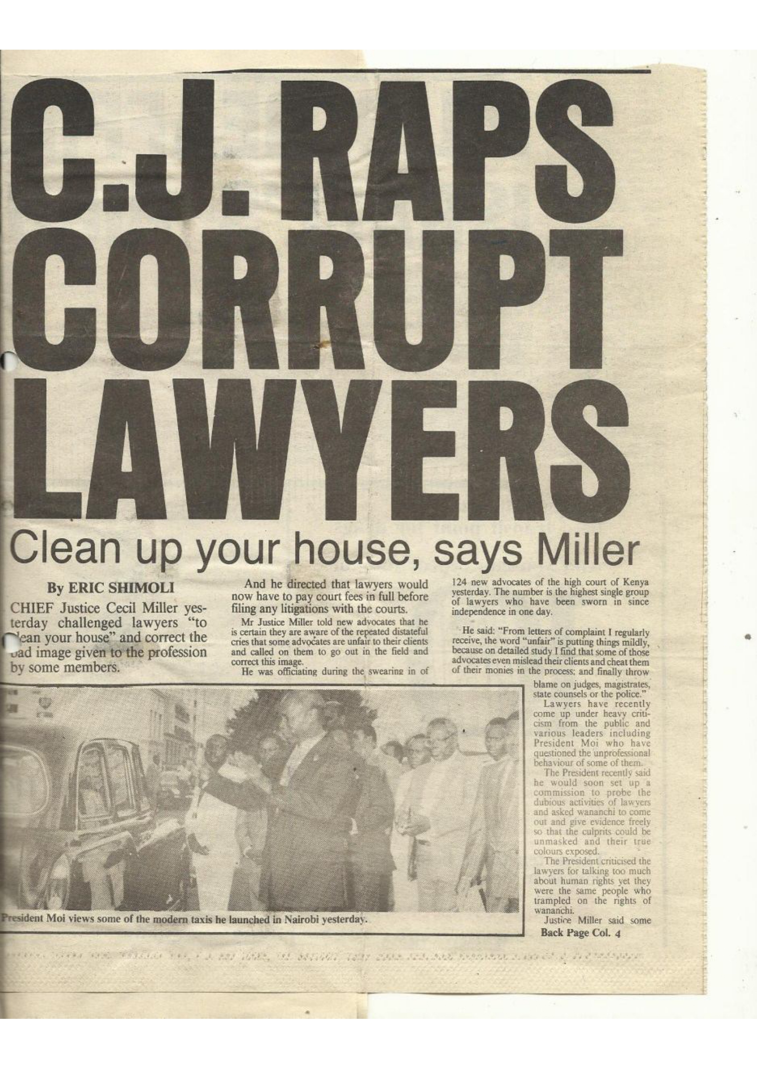 The President recently said he should soon set up a commission to probe the dubious activities of lawyers and asked wananchi to come out and give evidence freely so that the culprits could be unmasked and their true colors exposed.